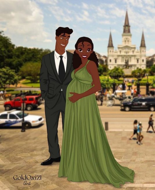 “Parintii mei imi aduceau role cu desene animate. Aveam o colectie si adeseori copiam personaje de desene animate”, spune ea. Aceasta poza, pe care Oksana a realizat-o cu Tiana insarcinata si printul Naveen are in fundal Catedrala St.Louis, principala atractie din New Orleans.