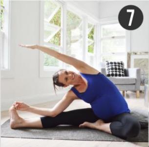 Aceasta pozitie de meditatie este perfecta pentru a intinde partea inferioara a coapselor. De asemenea, este modalitatea perfecta prin care mamicile isi pot masa picioarele obosite. Este exercitiul de yoga in sarcina care creeaza cel mai mult spatiu pentru bebelus.