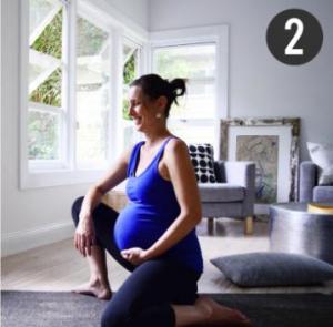 In timpul acestui exercitiu, mamicile trebuie sa respire si sa-si relaxeze gatul si umerii. De asemenea, este o pozitie buna pentru inceputul travaliului, cand bebelusul trebuie orientat in directia corecta.