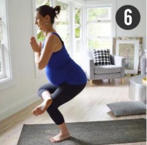 Din moment ce burtica este intr-o continua crestere,centrul de greutate al corpului are tendinta sa se duca mereu in fata. Cu ajutorul acestei pozitii mamicile reusesc sa-si intinda sis a-si relaxeze partile laterale ale corpului lor. Rezultatul este un sentiment de eliberare, spatiu si un plus de energie. Se mentine respiratia pentru 5-10 secunde si apoi se schimba pozitia pe celalalt picior.