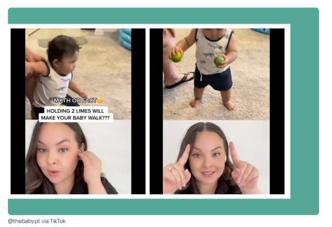 Fizioterapeutul pediatru Dr. Olivia Reyes (@thebabypt) a oferit o explicație clară într-un videoclip în duet cu cel original, care a adunat peste 8.000 de vizualizări. Ea a punctat că nu lime-urile în sine sunt cheia succesului, ci abilitatea copilului de a sta în picioare.