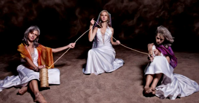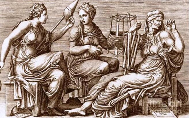 Sora cea mare, Ursitoarea, ţine în mână un fus şi toarce. Cea mijlocie, Soarta, poartă cu ea un caier din care deapănă. Iar cea mică, Moartea, are o foarfecă, pe care o va folosi pentru a tăia firul atunci când va sosi timpul.