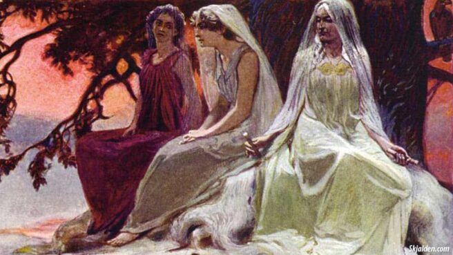 Mitologia nordică are şi ea propria versiune a ursitoarelor răspândite în restul Europei. Aici, trei aşa-numite Norne frumoase şi puternice locuiau în Fântâna Destinului (Urd), între rădăcinile uriaşului Arbore al Lumii (Yggdrasill). Şi ele ţeseau firul vieţii nou-născutului, dar, în plus, scrijeleau rune în trunchiul arborelui, pentru a crea destine. La vikingi, se obişnuia ca proaspetele mame să mănânce un bol cu terci, numit „terciul Nornelor”. Aceasta era o ofrandă pentru aceste fiinţe magice, în speranţa că acestea vor fi blânde cu nou-născuţii lor.