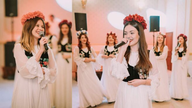 „Urselor, Zânelor, Frumoaselor, Fecioarelor/ Cu bine veniţi/ Bine ne găsiţi/ Cum vă primim/ Cu pusă masă/ Cu bucate drese/ Vânaturi alese/ Aşa vă ospătaţi/ Până vă dumiriţi/ Noroc să meniţi/ Fătului nost…‘.”