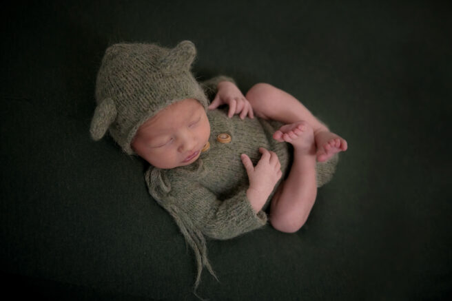 Cele mai reușite cadre cu nou-născuți se obțin în primele două săptămâni de viață. Atunci, bebelușii dorm profund, au poziții naturale de fetus și sunt mai ușor de liniștit. În plus, pielea lor este încă netedă, iar expresiile — adorabil de autentice. Îți recomand să programezi ședința din timp, ideal chiar din trimestrul al doilea de sarcină.